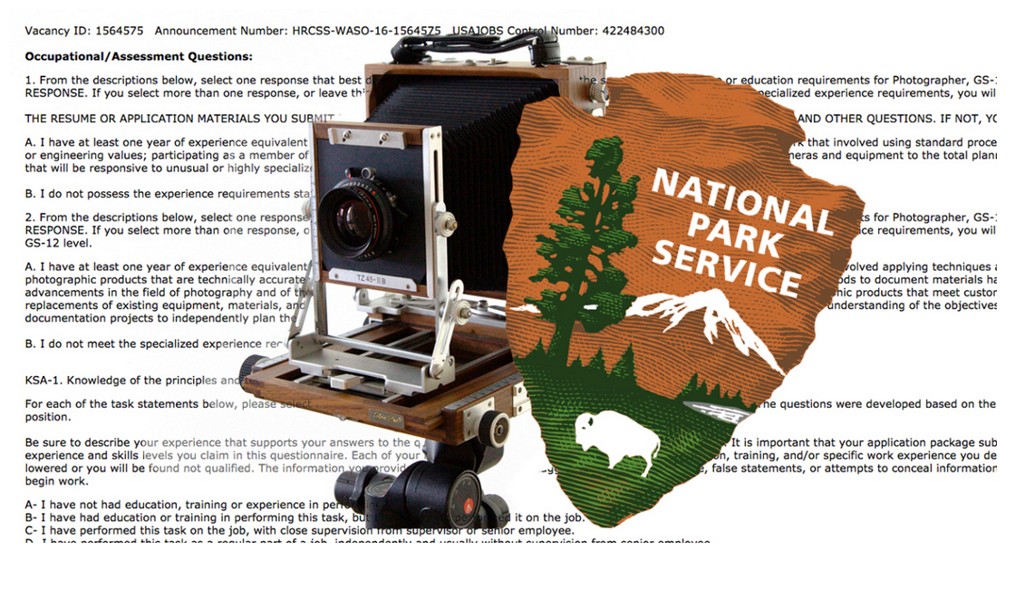 Parks Portfolio navigation National Park Service $100,000 Job Opening. Skills Required: Large Format Photography